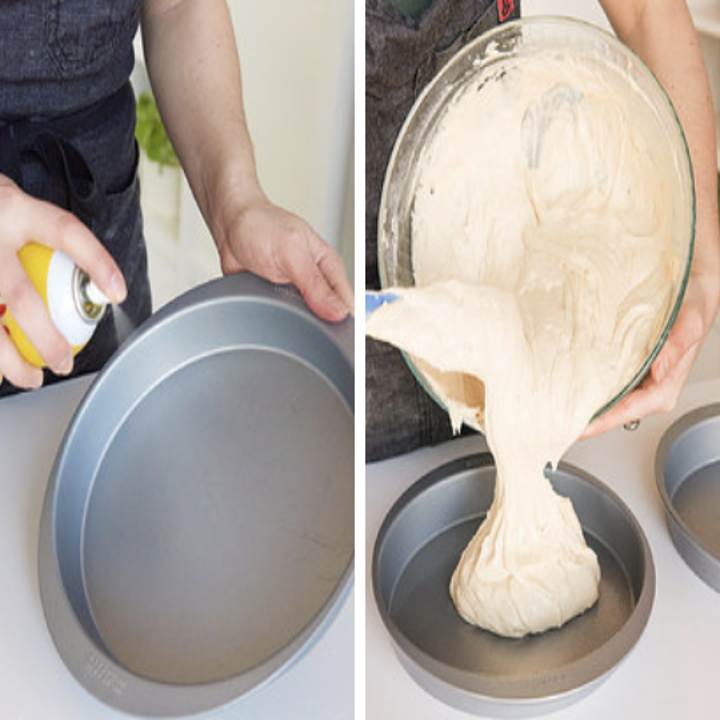 7. Prevent batter from sticking by prepping cake pans and cookie scoops with nonstick spray — even if they're already nonstick...
